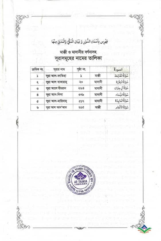 বাংলা অনুবাদ ও সংক্ষিপ্ত তাফসীর